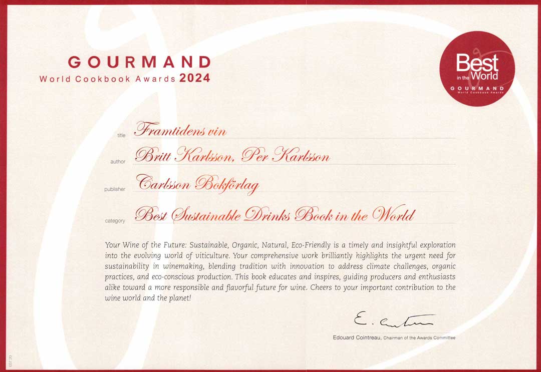 Läs mer i Pers artikel på BKWine Magazine: Vår bok ”Framtidens vin” vann pris som världens bästa bok om hållbarhet i Gourmand International.